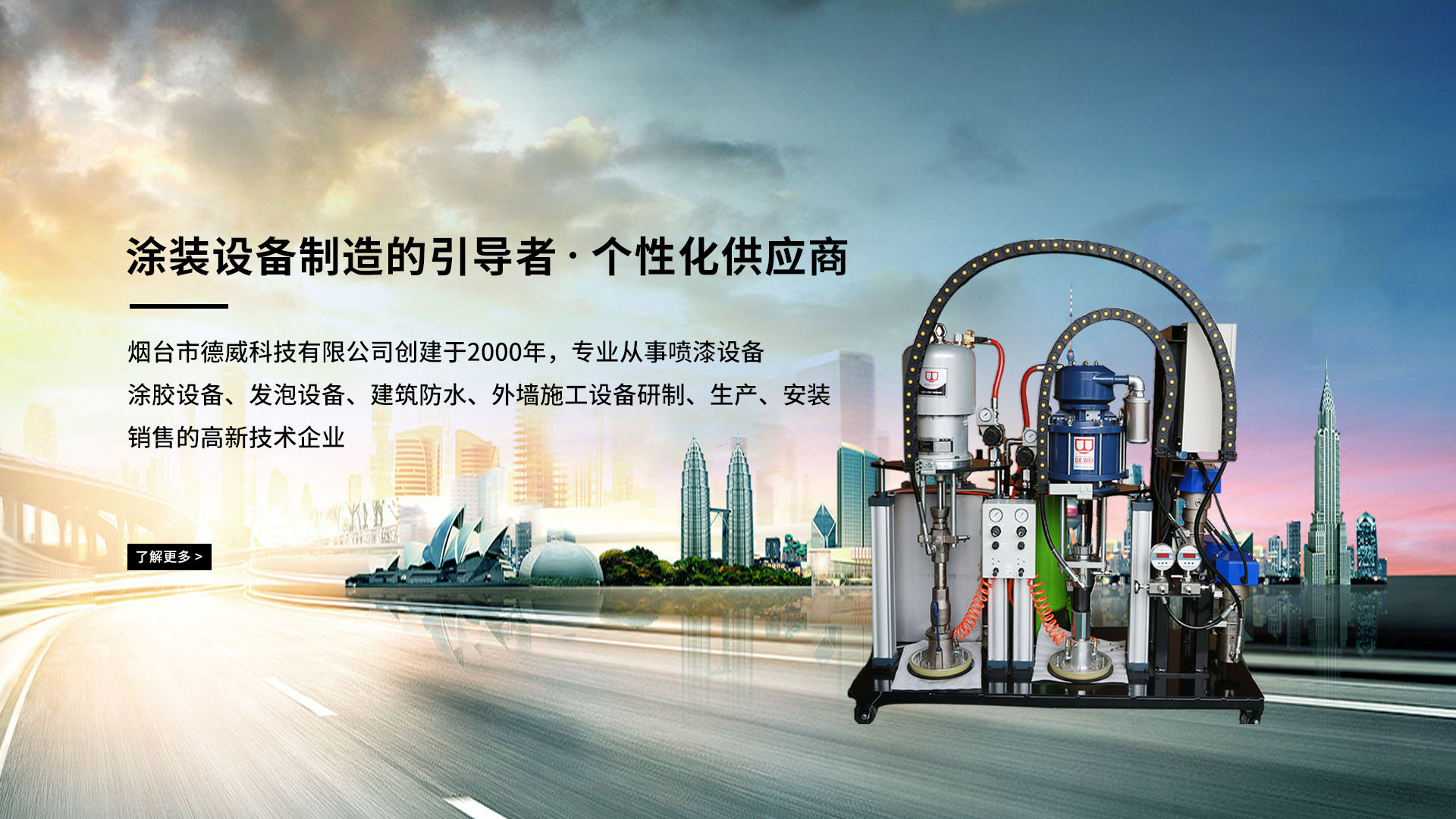 烟台市德威科技有限公司创建于2000年,专业从事喷涂设备、涂胶设备、发泡设备、建筑防水、外墙施工设备研制、生产、安装、销售的高新技术企业,是中国涂装设备制造的引导者和主要供应商。公司2008年开始与韩国公司进行全面战略合作,利用韩国先进的生产工艺和技术,提高了所有产品的质量和性价比,产品性能已达到国内外先进水平。
